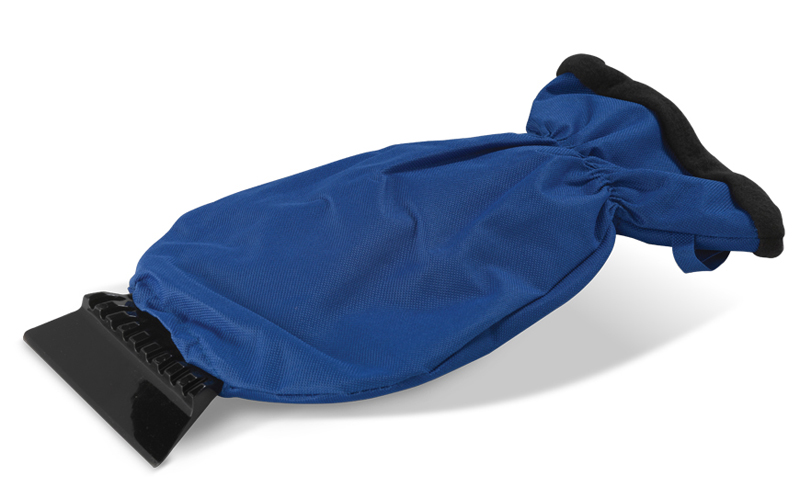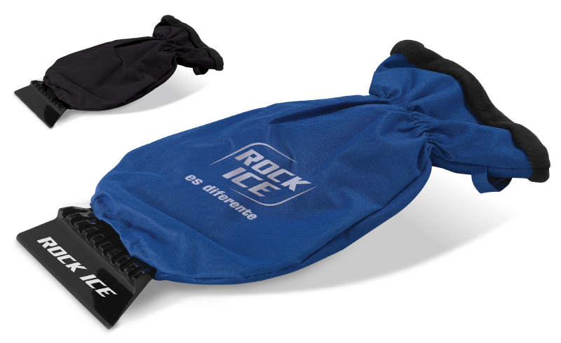 Eiskratzer mit gefüttertem Handschuh aus 600D Polyester. Nie wieder kalte Finger beim Kratzen! Standard Werbeanbringung auf dem Eiskratzer. Druck auf dem Handschuh mit Transferdruck möglich.